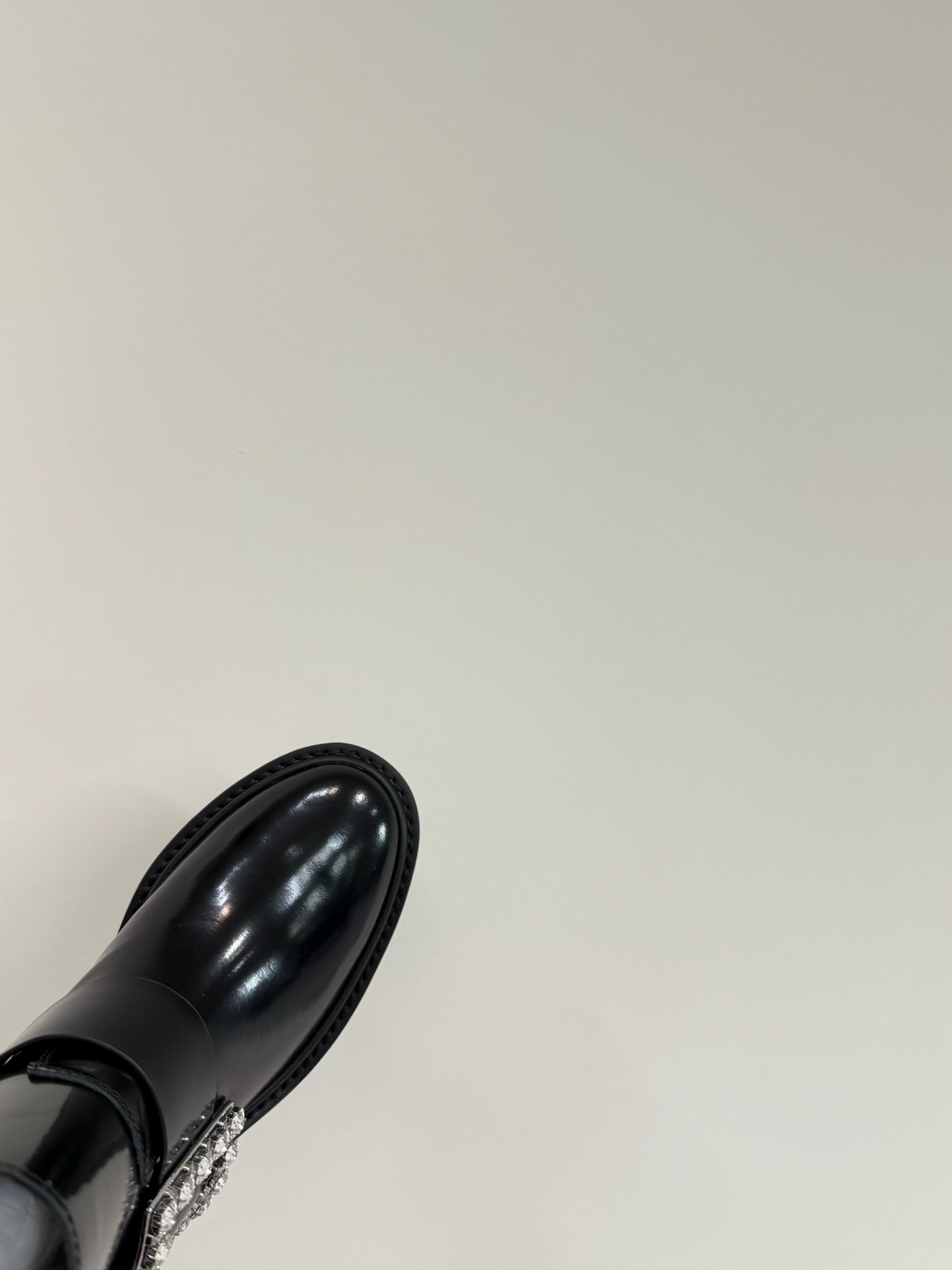 VIV' RANGERS CHELSEA ANKLE BOOTS IN BLACK CALFSKIN WITH SILVER CRYSTAL BUCKLE