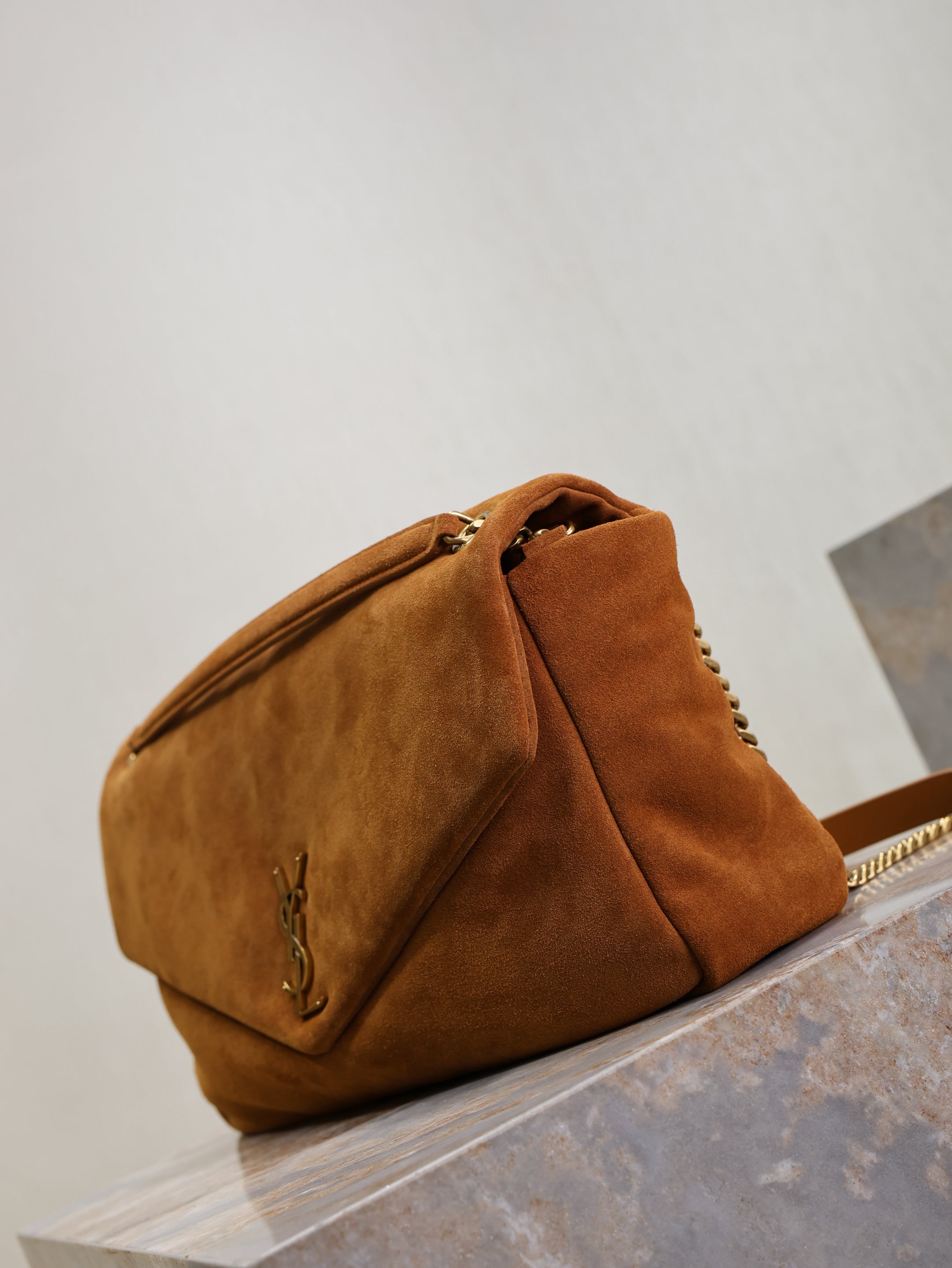 YSL 25S CALYPSO GM 38 IN DARK CARAMEL SUEDE GOLD HARDWARE