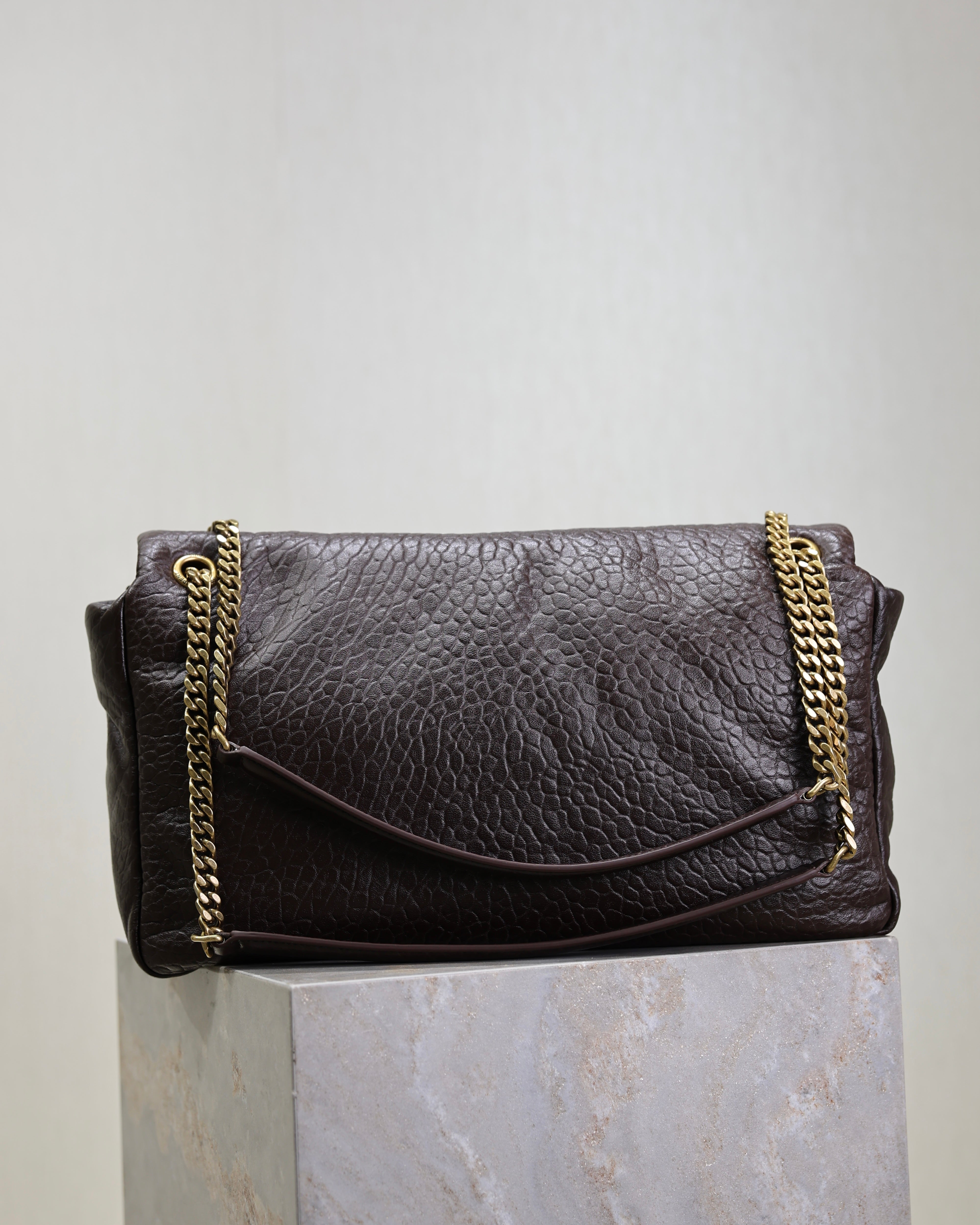 YSL 25S CALYPSO GM 38 IN DARK CHOCOLATE CALFSKIN GOLD HARDWRE