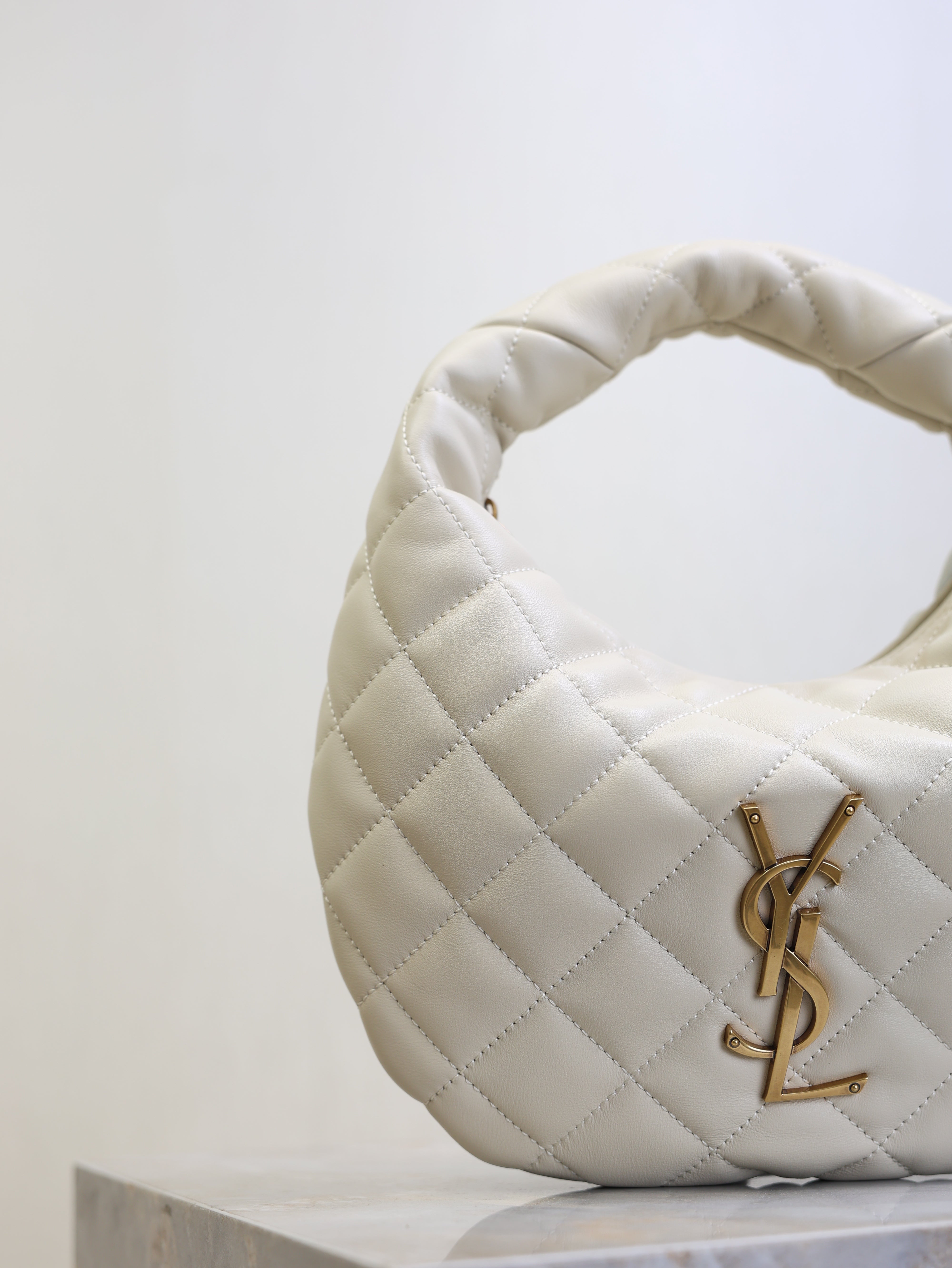 YSL 25S ICARINO 17 IN WHITE QUILTED CALFSKIN GOLD HARDWRE