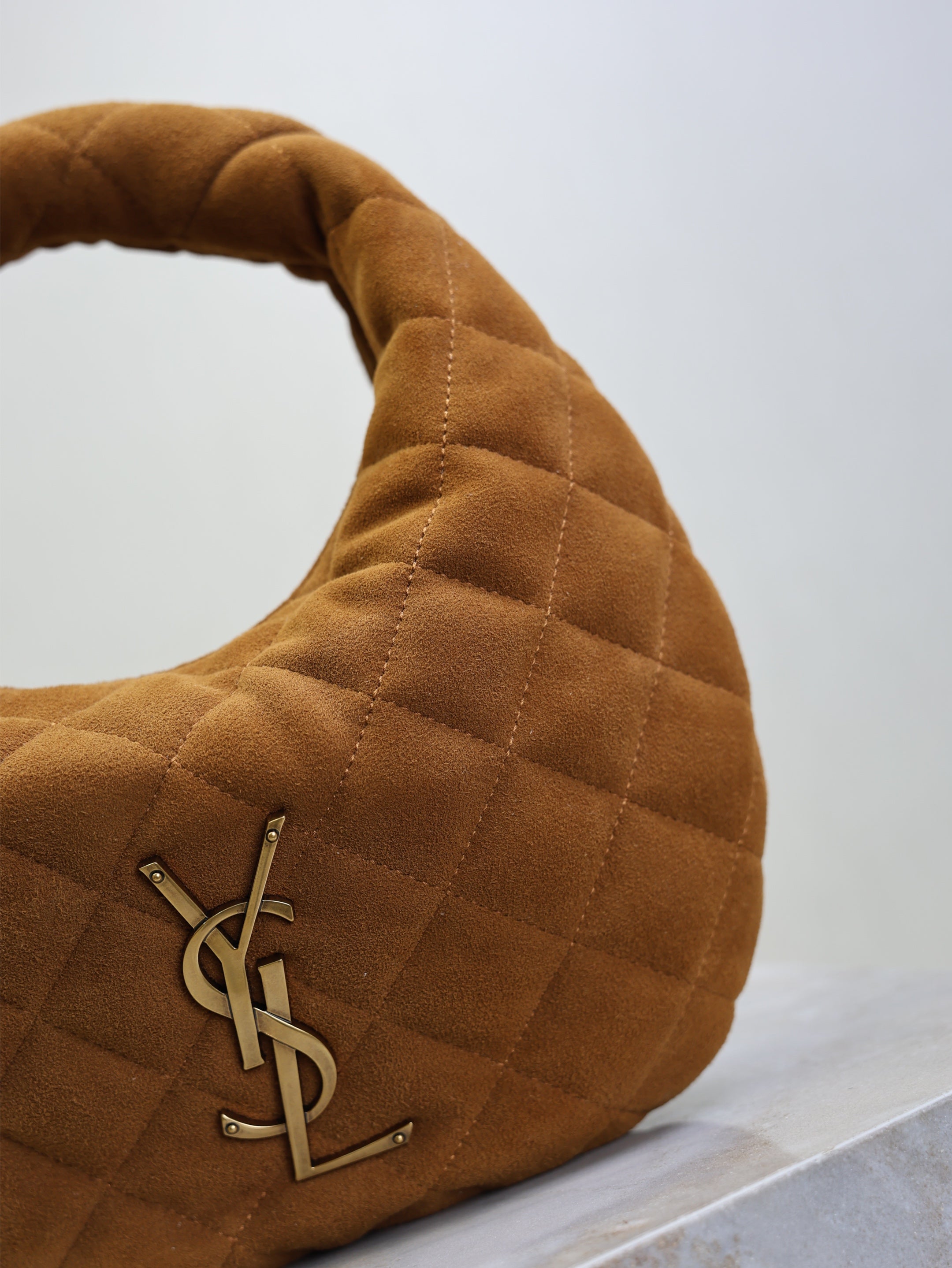 YSL 25S ICARINO MINI 17 IN CARAMEL QUILTED SUEDE GOLD HARDWRE